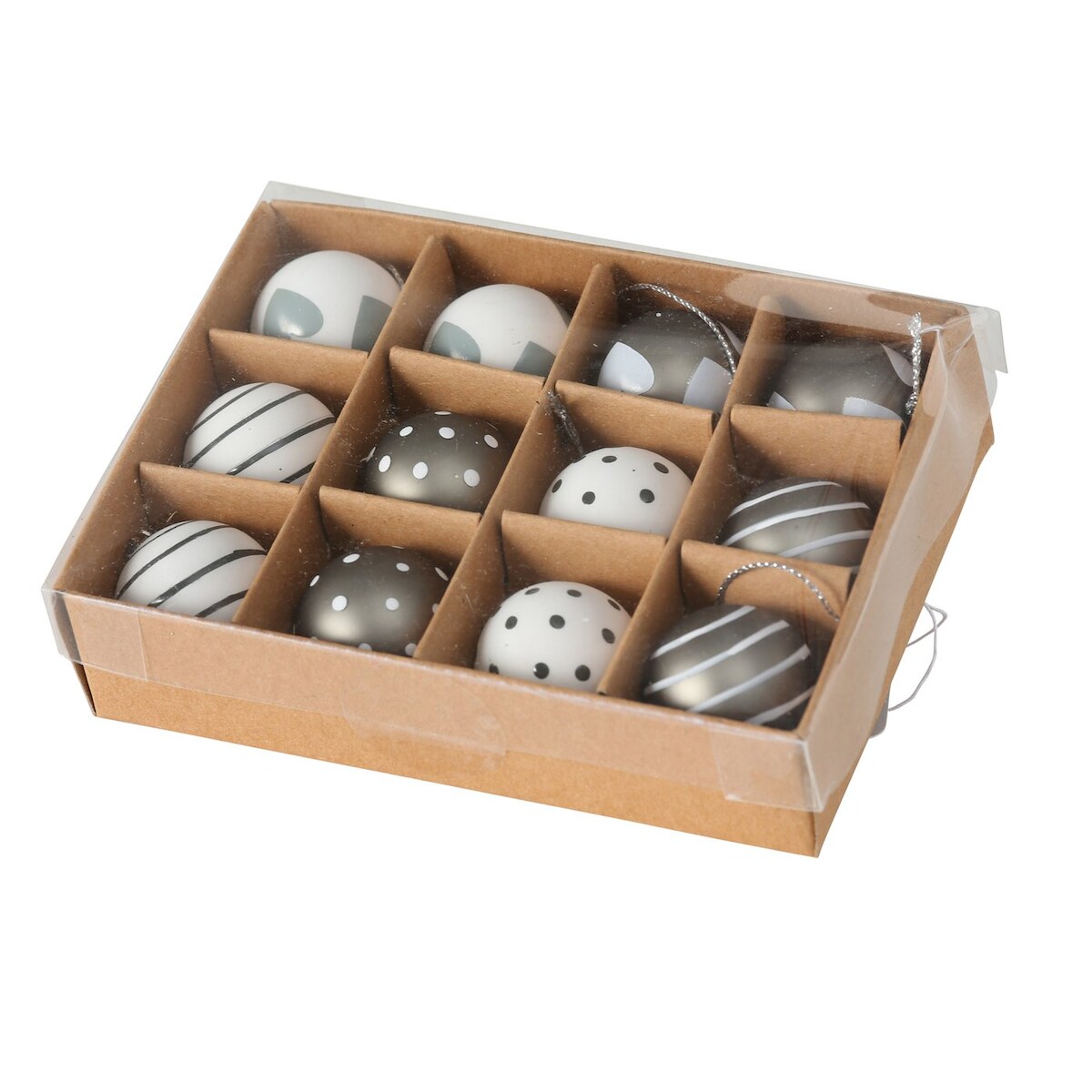 Weihnachtskugel Lola Ø 3 cm grau weiß 12 er Set