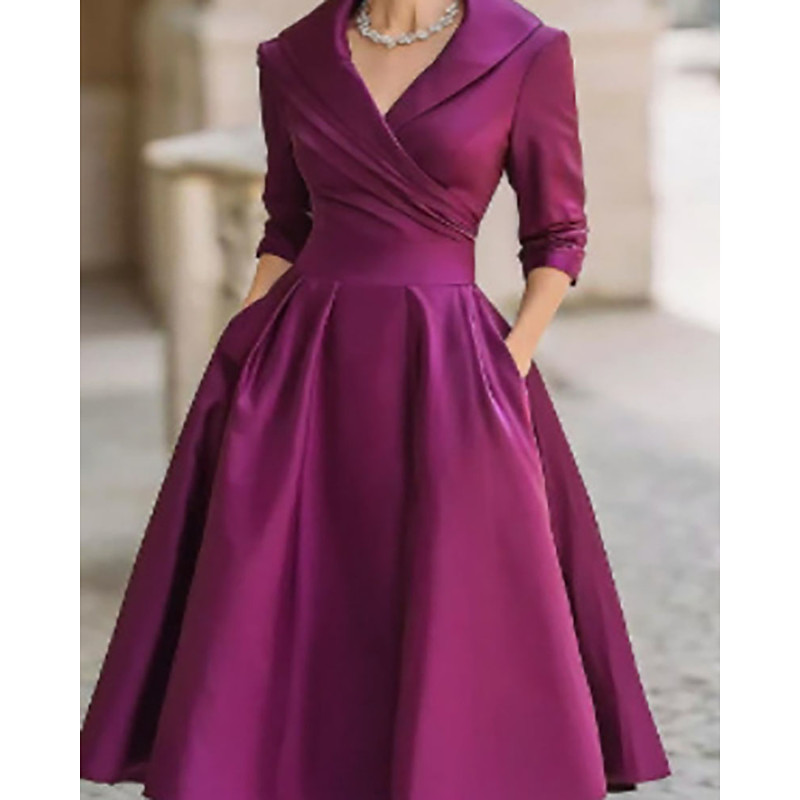 Women's Midi Dress Satin Dress Party Dress Sheath Dress Wrap Dress Elegant Modern Evening Party Party Special Occasion Regular Fit Plain Long Sleeve V Neck White Pink Wine Khaki Spring Fall