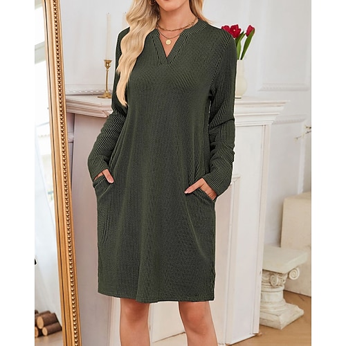 Per donna Abito Midi Abito Felpa Vestito Casual Moda Moderno Quotidiano All'aperto Weekend Vestibilità regolare Semplice Manica Lunga Scollo a V Nero Rosa Verde militare Viola Primavera Autunno