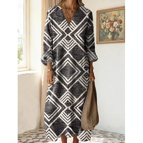 Per donna Abito Midi Vestito Estivo Abito a trapezio Vacanza Casual Boho Ferie Vestibilità regolare Floreale Grafico Blocco di colori Manica Lunga Scollo a V Blu Rosa Marrone Verde Estate Primavera