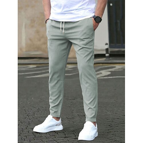 Herren Hose Chinos Chinohose Freizeithose Kordelzug Tasche Elastischer Bund Einfach Komfort Volle Länge Outdoor Täglich Ausgehen Mode Streetwear Blau 1# Schwarz Mikroelastisch
