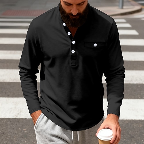 Per uomo Maglietta Maglia Henley Camicia a Maniche Lunghe Manica Lunga Henley Primavera Autunno Semplice Moda Streetwear Tempo libero Bottoni Vacanza Sport Outdoor Casuale Grigio scuro Aalbicocca