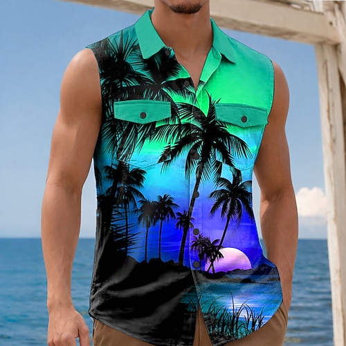 Per uomo Albero di Cocco Natura e paesaggi Piante Tropicali Camicia Camicia hawaiana estiva Camicia Aloha Senza Maniche Resort Vacanza al Mare Estate Primavera Collo ripiegato Stampa 3D Due tasche