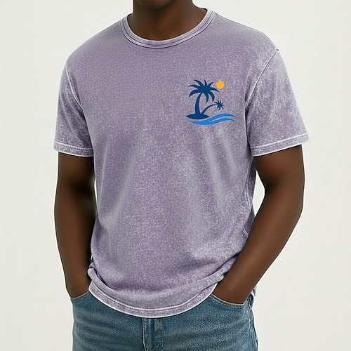 Per uomo Hawaii Palma di Cocco Maglietta Maglietta per lavaggio minerali Manica Corta maglietta Lavaggio acido Girocollo Camicia Vacanza Vintage Retrò Casuale Spiaggia Viaggio Blu Viola Grigio Estate