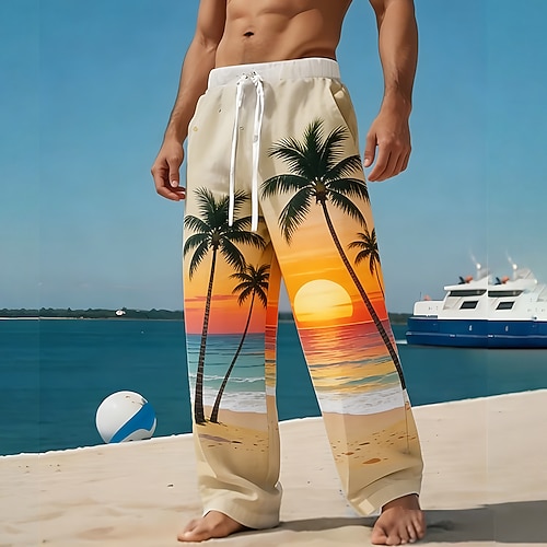 Per uomo Albero di Cocco Piante Tropicali Pantaloni Pantaloni Larghi Pantaloni casual Misura del girovita medio Hawaiano Vacanza Ferie Abbigliamento mare Coulisse Elastico in vita Gamba larga Estate