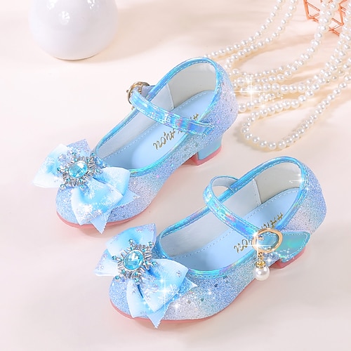 Glitzernde Mary-Jane-Schuhe für Mädchen mit Schleife und Kristallverzierungen – verstellbarer Riemen, in Rosa und Blau erhältlich
