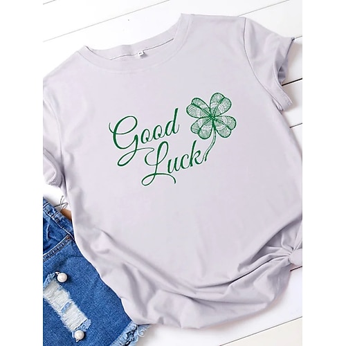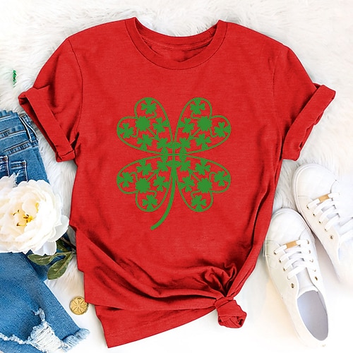 Giorno di San Patrizio Festa di San Patrizio Per donna Maglietta Trifoglio Moda Manica Corta Girocollo Top Regolari Casuale Giorno di San Patrizio Stampato Nero Giallo Rosa Rosso Viola Primavera