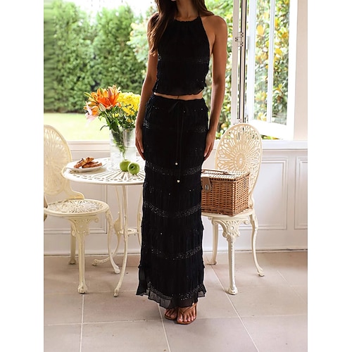 Per donna Set di gonne Senza Maniche All'americana Semplice Arricciato Rete Senza schiena Elegante Moda Streetwear Casuale Quotidiano All'aperto Blu Nero Bianco Estate Vestibilità regolare
