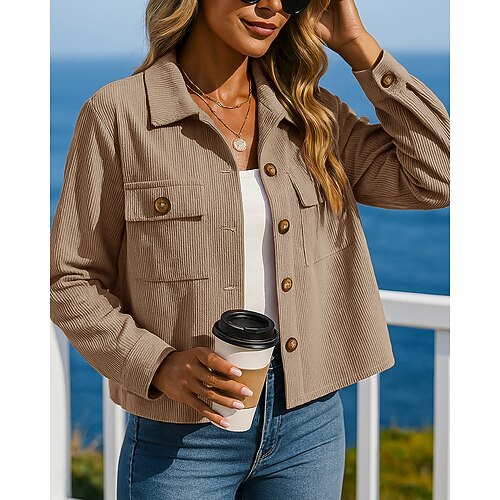 Per donna Giacca corta Lounge Giacca di velluto a coste Bottoni Manica Lunga Top Athleisure Autunno Tinta unita All'aperto Viaggio Sportivo abbigliamento sportivo Abbigliamento sportivo Nero Rosa