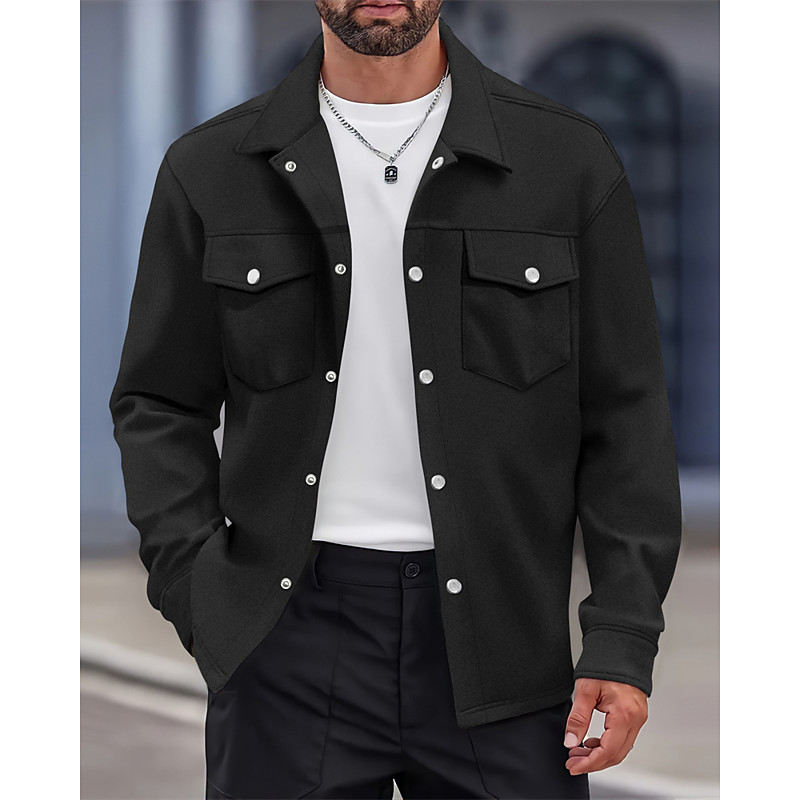 Men's Shirt Jacket Overshirts Transition Jacket Daily Lightweight Pocket Spring Plain Classic Lapel Regular Black Yellow Navy Blue Green Jacket