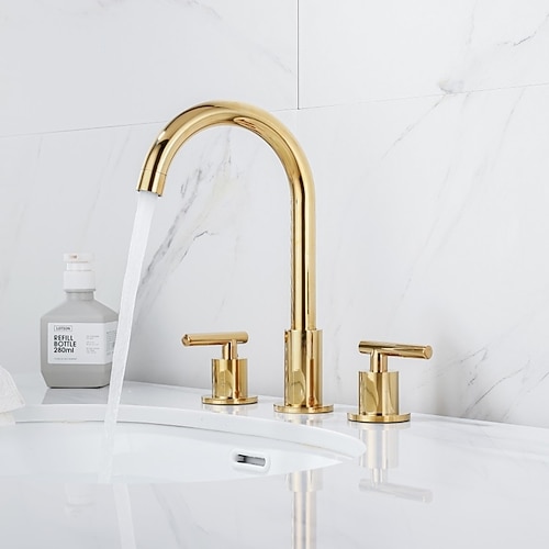 rubinetto miscelatore per lavabo da bagno diffuso, rubinetto per lavabo girevole a 360 gradi in ottone a 3 fori con 2 maniglie montato sul ponte, rubinetto per lavabo da bagno con tubo flessibile caldo e freddo