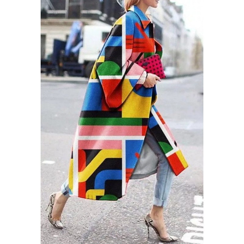 Women's Winter Coat Comfortable Breathable Print Casual Geometric Vacation Street Casual Daily Wear Open Front Long Turndown Regular Fit Long Sleeve Outerwear White Red Dark Green Spring Fall