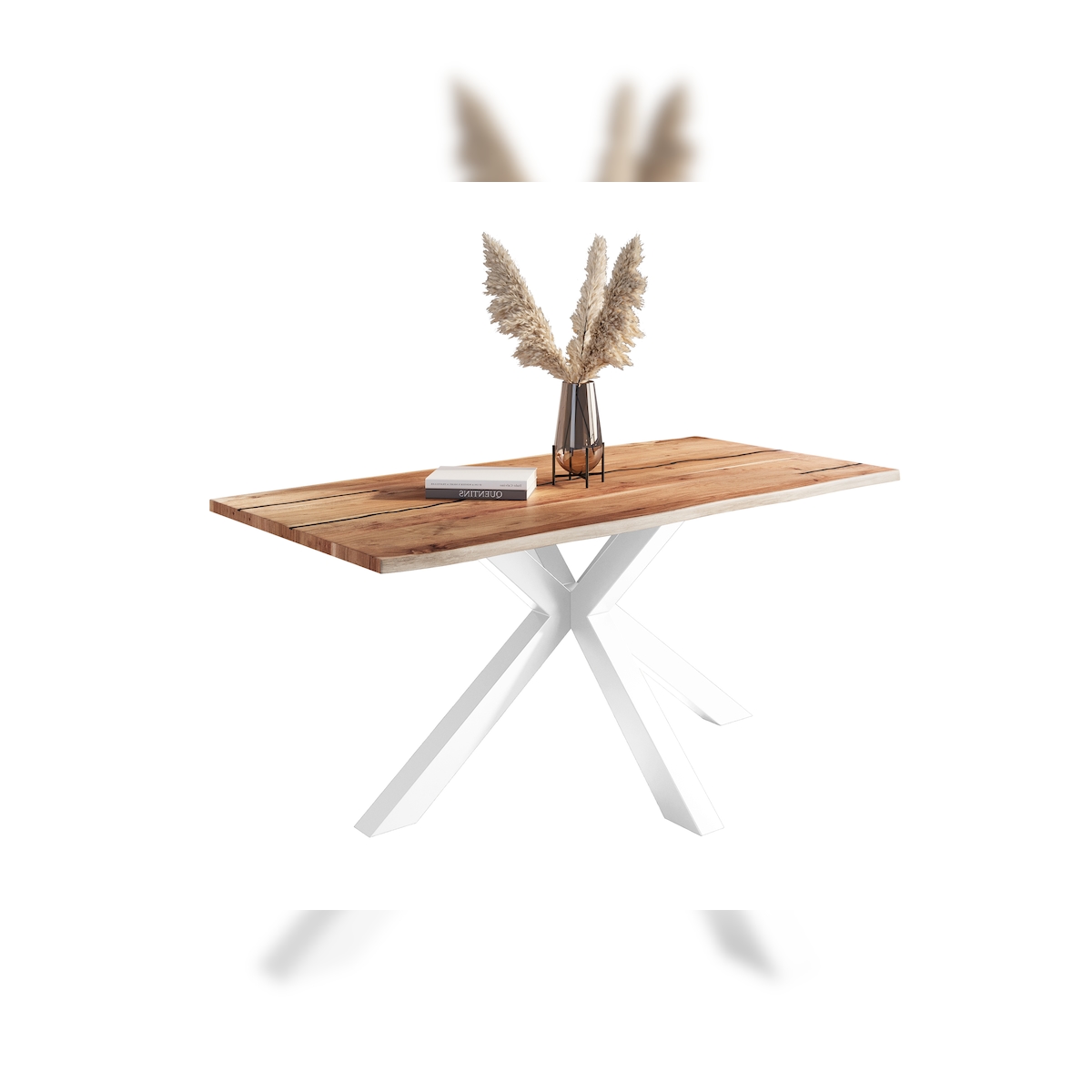 Möbelliebling Baumkantentisch Akazie mit schwarzen Resin-Adern naturfarben 140 x 80 cm Spider-Gestell weiß POLLY