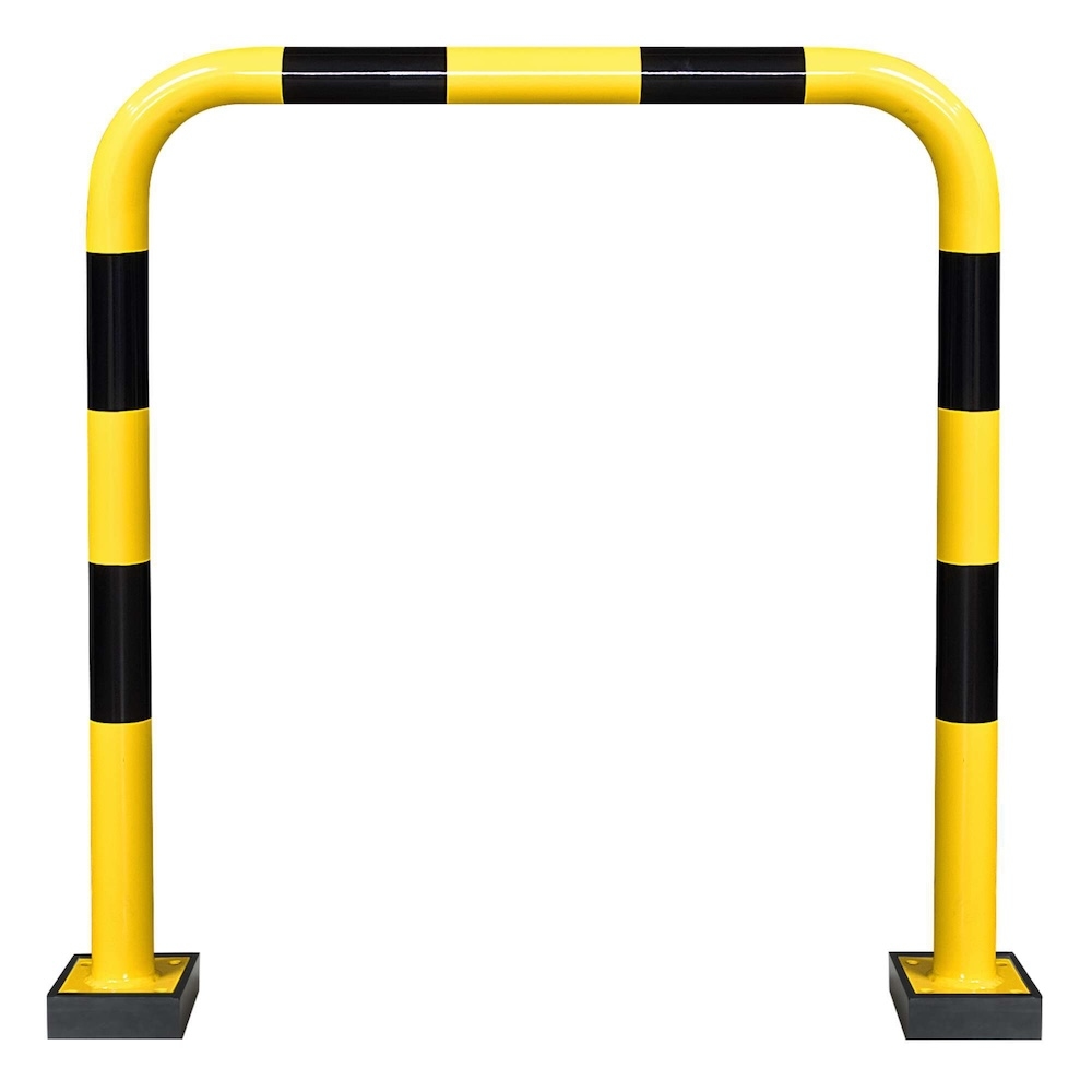 PROREGAL Rammschutz-Bügel Swing mit PU-Federelement | HxB 124x100cm | Rohr-Ø 7,6cm | Feuerverzinkter & kunststoffbeschichteter Stahl | Schwarz-Gelb