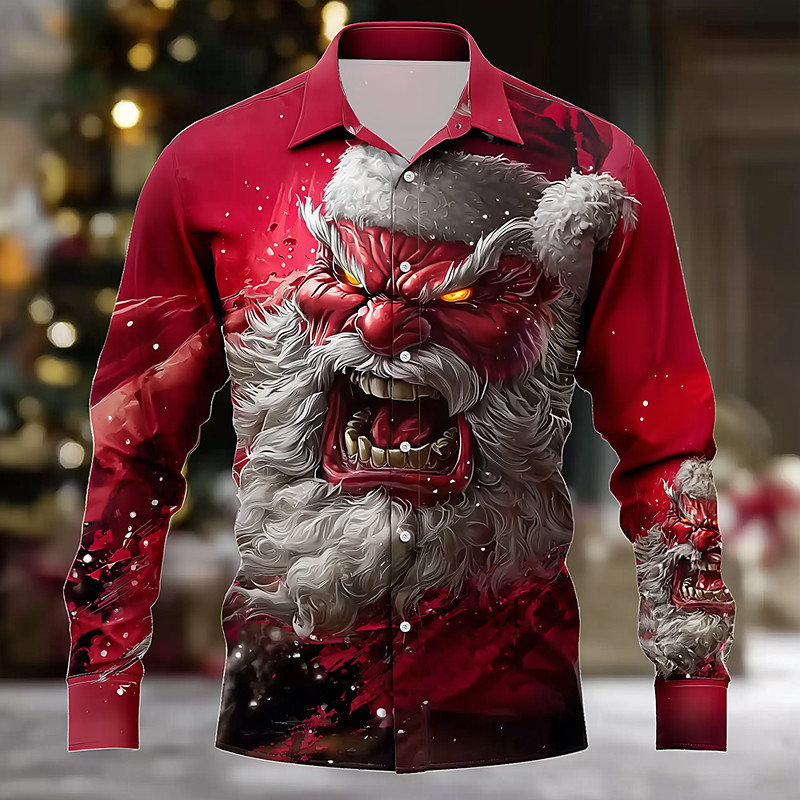 Christmas Men's Muscle Roaring Santa Claus Shirt Button Up Shirt Long Sleeve Funny Outdoor Holiday Spring Fall Turndown 3D Print Collared Shirts Red 1 Red