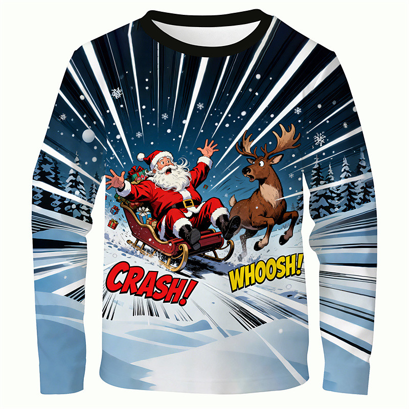 Christmas Men's Santa Claus Funny T Shirt Long Sleeve T shirt 3D Print Crew Neck Shirt Fashion Basic 3D Street Casual Daily Blue 2# Blue Summer Spring Clothing Apparel S M L XL XXL XXXL