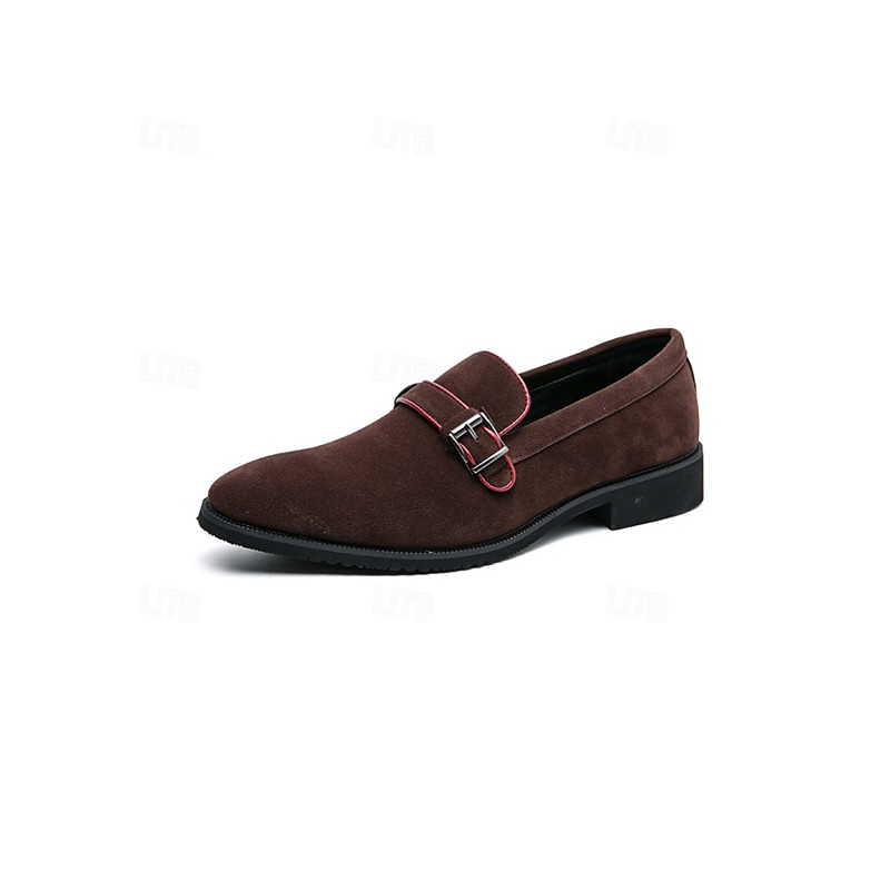 Men's Brown Loafers with Buckle, Elegant Suede Slip-On Shoes, Perfect for Office, Semi-Formal and Business Casual Occasions, Comfortable Dress Shoes for Men and Weddings