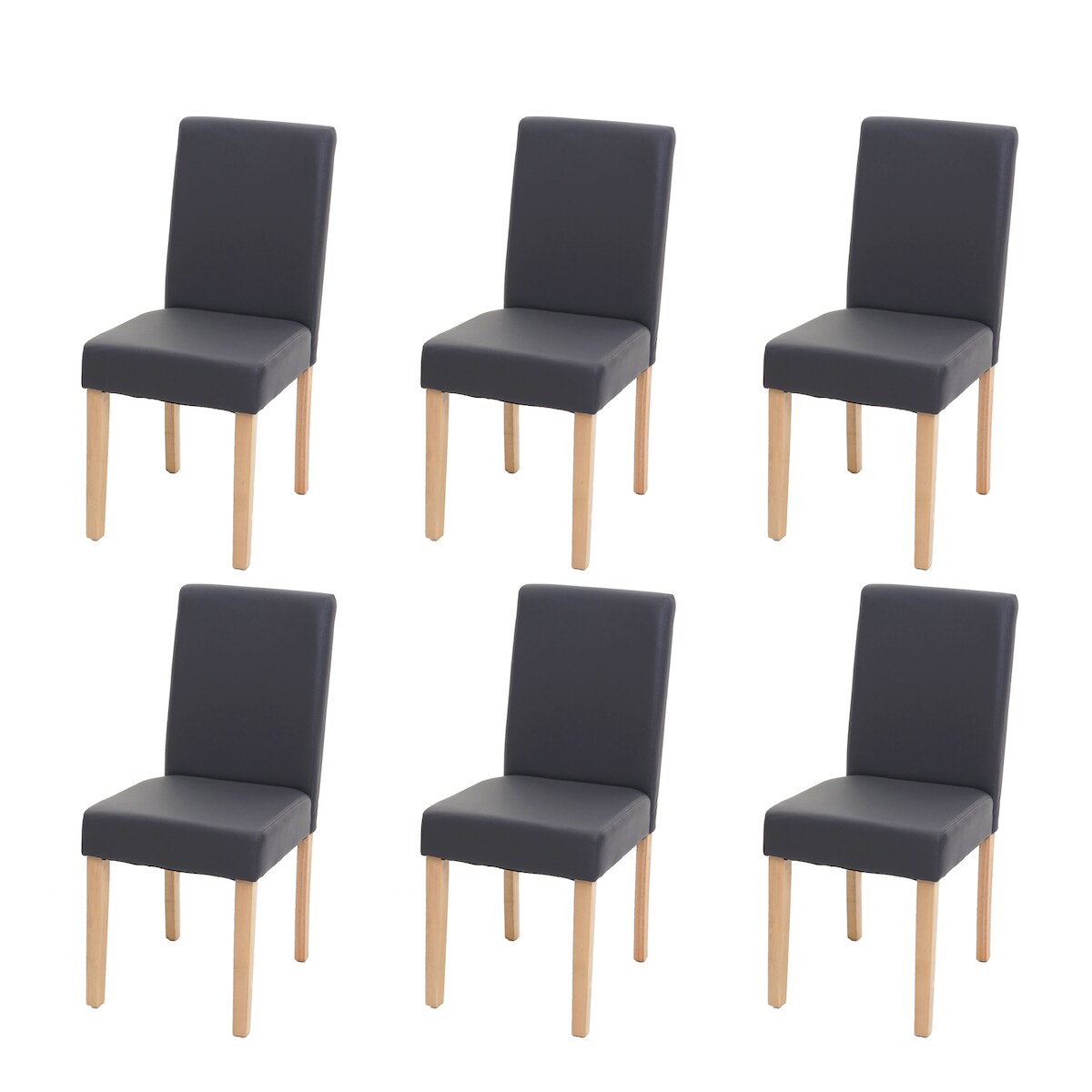 Mendler 6er-Set Esszimmerstuhl Stuhl Küchenstuhl Littau ~ Kunstleder, grau matt, helle Beine