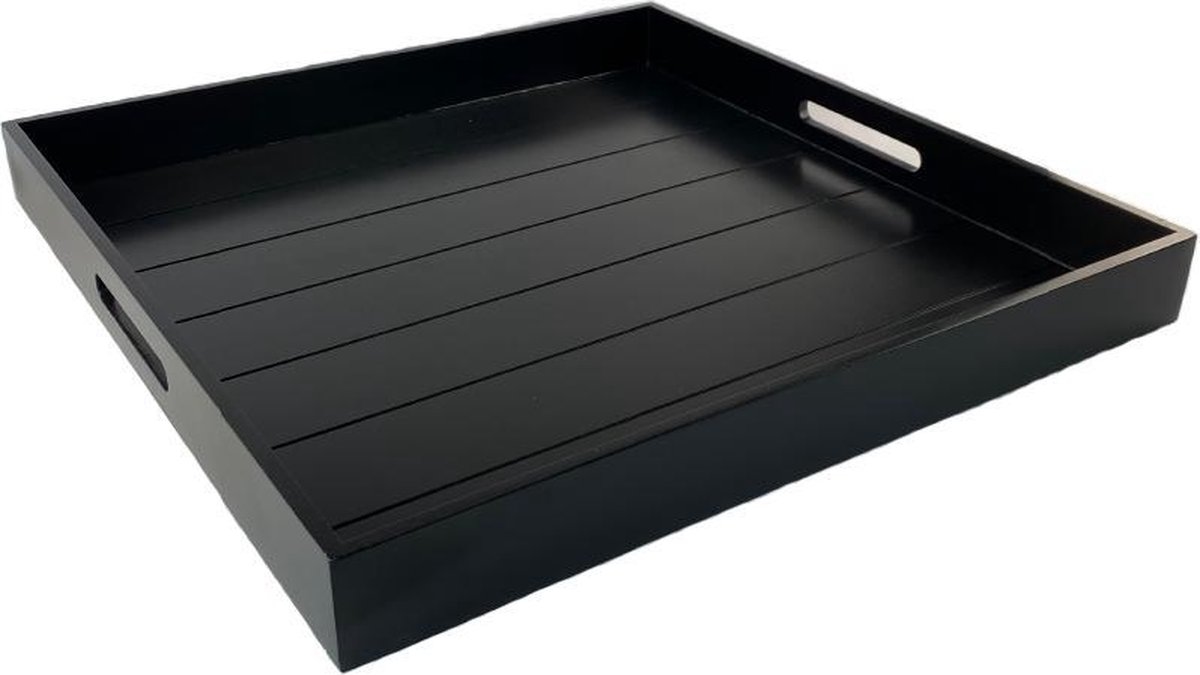 Tablett XL von WDMT – 56 x 56 x 6 cm – Tablett quadratisch – Servierbrett – Tabletts – Getränkebrett Holz – Extra groß – Schwarz