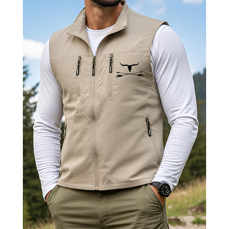 Men's Fishing Vest Hiking Vest Sleeveless Outerwear Outdoor Waterproof Quick Dry Breathable Pocket Polyester Dark Grey Black Army Green Camping / Hiking / Caving
