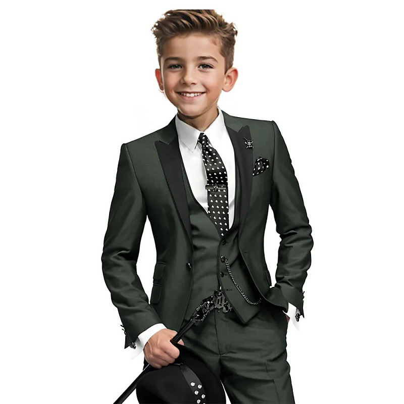 3 Pieces Ring Bearer Suit Boys' Kids Suit Blazer Vest Pants Boy's Formal Suit Casual Outdoor Party Fashion Cool Basic Solid Color Pocket Buttons Blue Black White Polyester