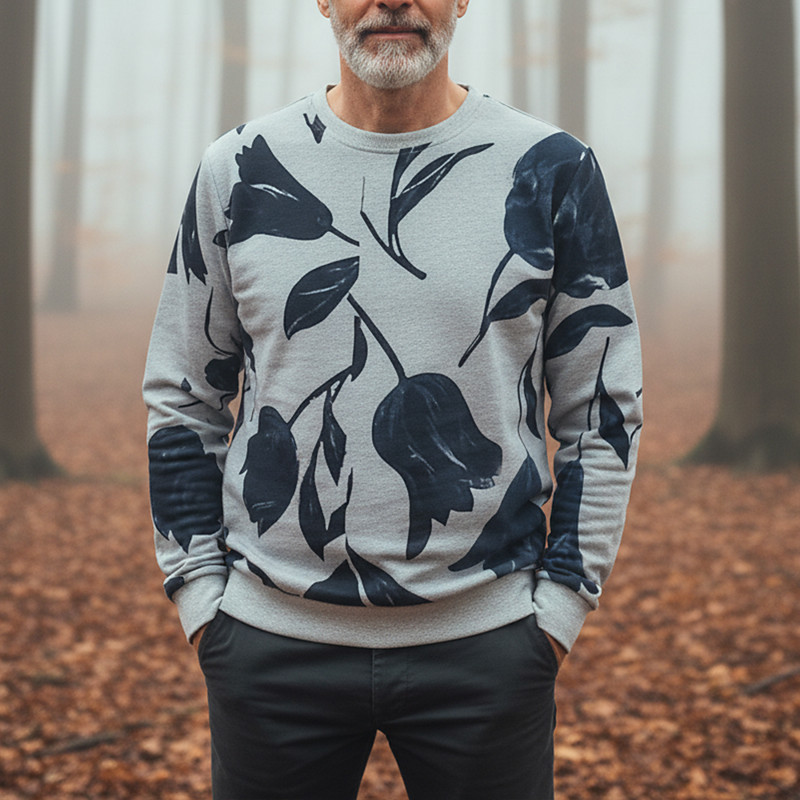 Men's Printing Flower / Plants Sweatshirt Sweatshirts Long Sleeve Sweatshirt Crewneck Vintage Retro Print Holiday Going out Festival Print Fall Winter