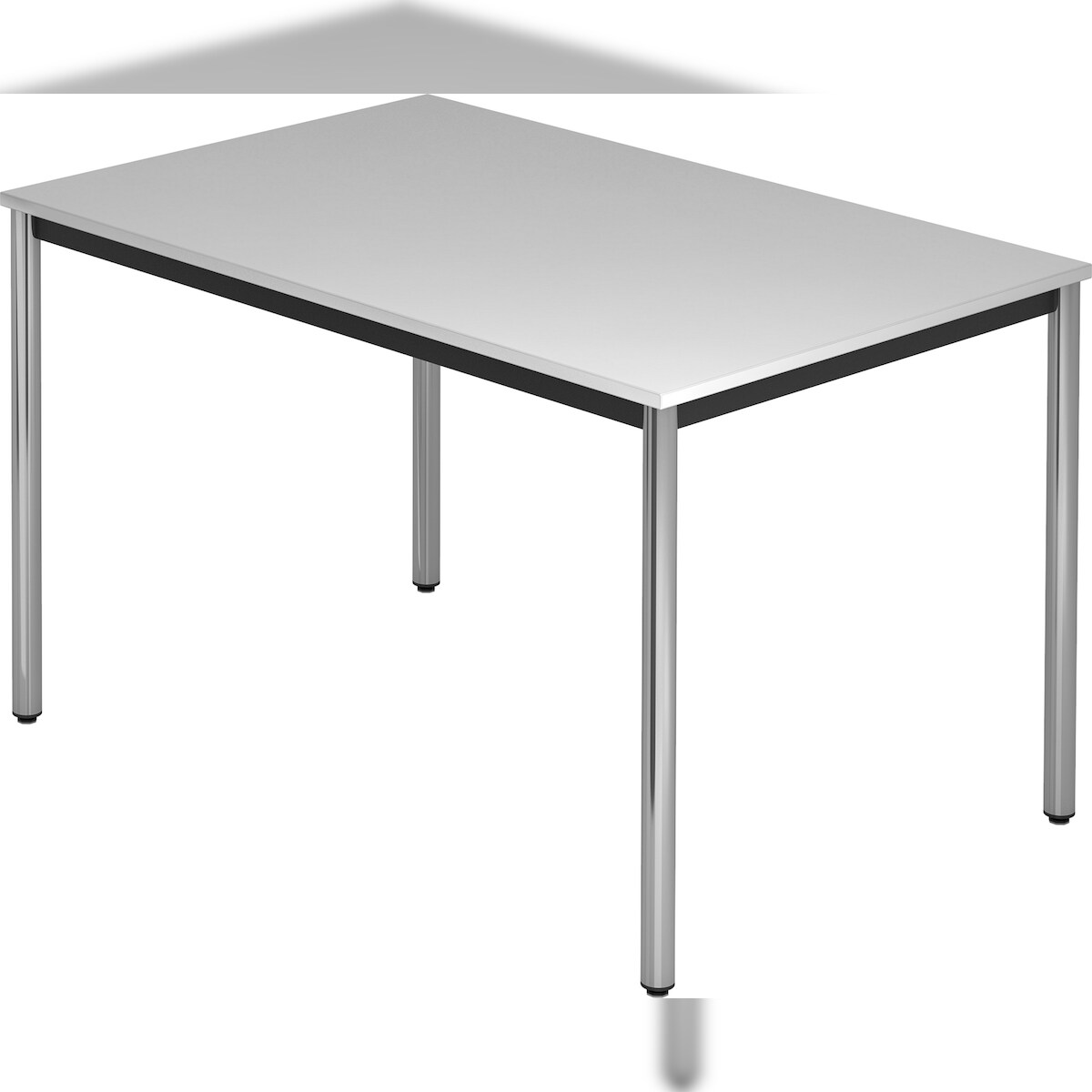 bümö Multifunktionstisch grau, Tisch 120 x 80 cm, Tischfuß verchromt - einfacher Tisch klein, Besprechungstisch System D-Serie, Konferenztisch,