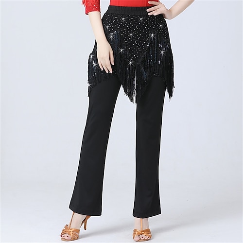 Frauenlatein Tanzhosen für Gesellschaftstanz – lange Hosen mit glitzernden Pailletten für Square Dance, Standard-/Modern-Auftritte üben