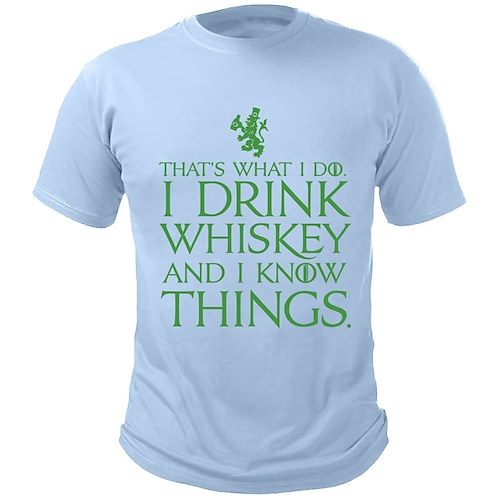 Festa di San Patrizio Per uomo Divertente Whisky Stampa lettera Maglietta 100% Cotone Manica Corta Grafico Camicia Nero Bianco Verde militare Maglietta comoda Vacanza Streetwear Abbigliamento di