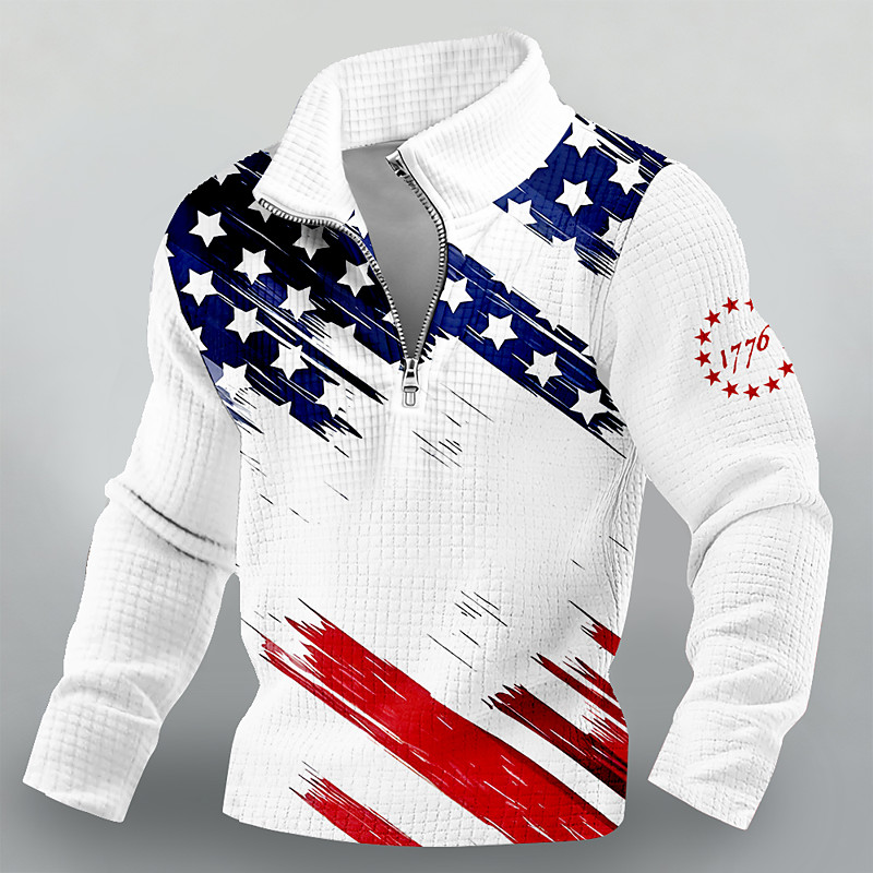 US America 250 Year Anniversary Men's American US Flag Waffle Sweatshirt Fashion Daily Stand Collar Quarter Zip Outdoor Streetwear Travel Blue Black White Red Gray Zip Up Fall Winter Designer S
