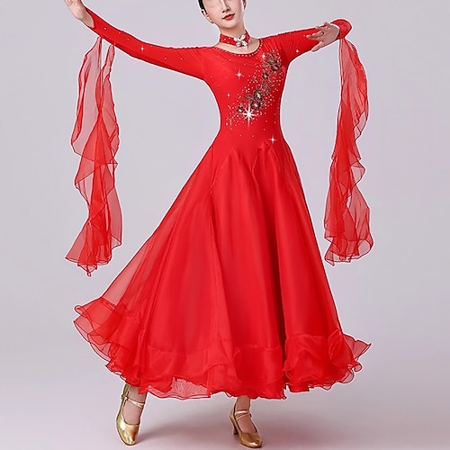 abito da ballo da sala da donna, per spettacoli, feste, maniche lunghe, moderno, valzer, competizione, abbigliamento da ballo, costumi