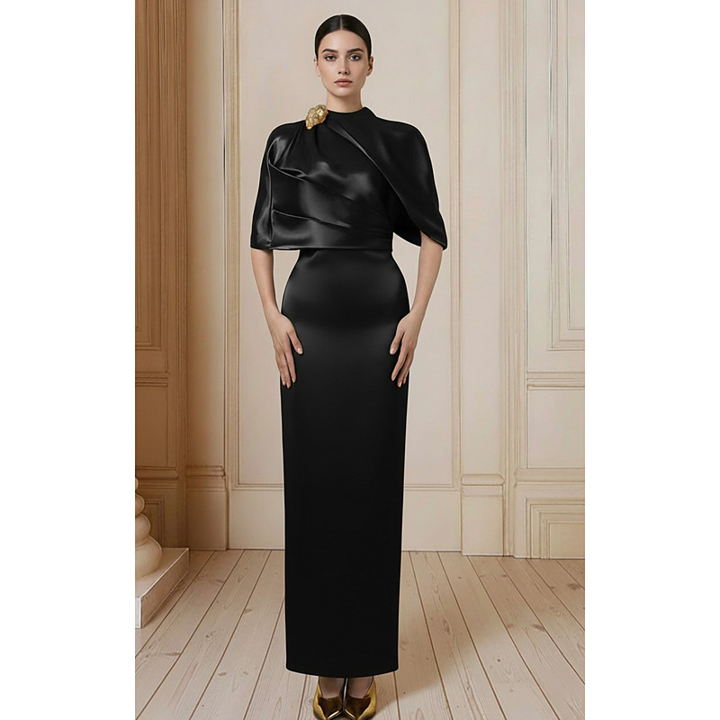 Sheath Column Floor Length Beaded Eembroidered Formal Dresses Mother of the Bride Dress Ball Gown with Cape Evening Gown Formal Dress Elegant Vintage Glittering Long Sleeve One Shoulder Wedding Formal
