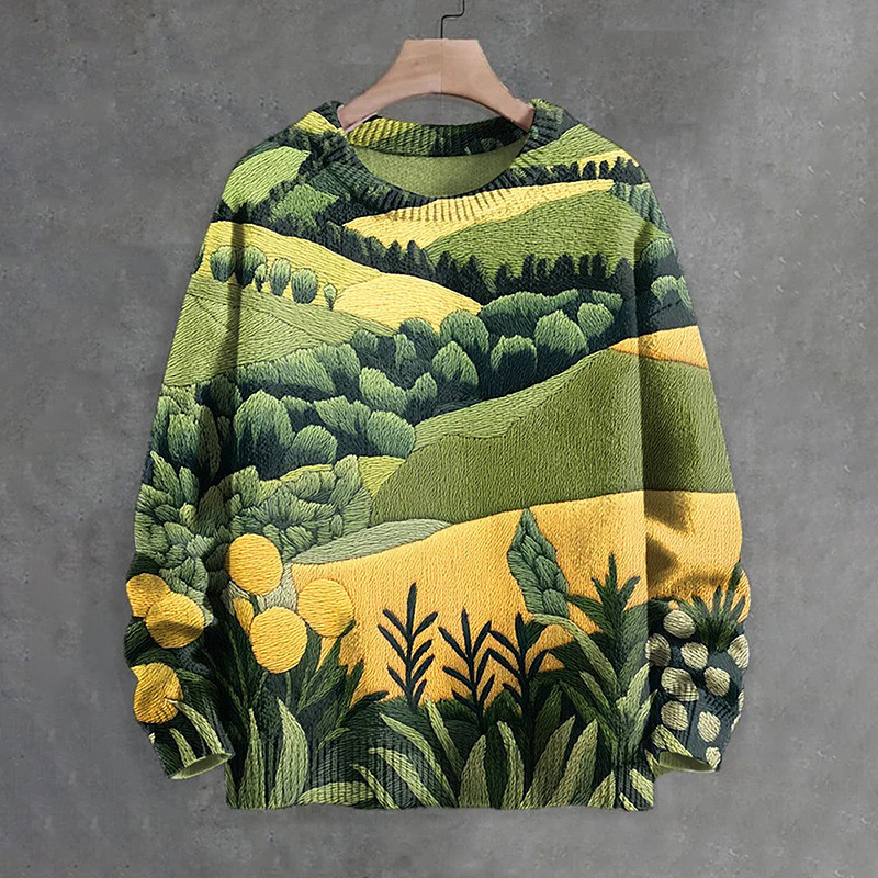 Women's Sweater Pullover Daily Casual Floral Graphic Ribbed Crew Neck Knitted Print Long Sleeve Regular Tops Knit Outdoor Weekend Dark Green Green Fall Winter