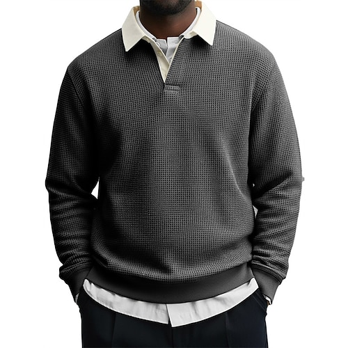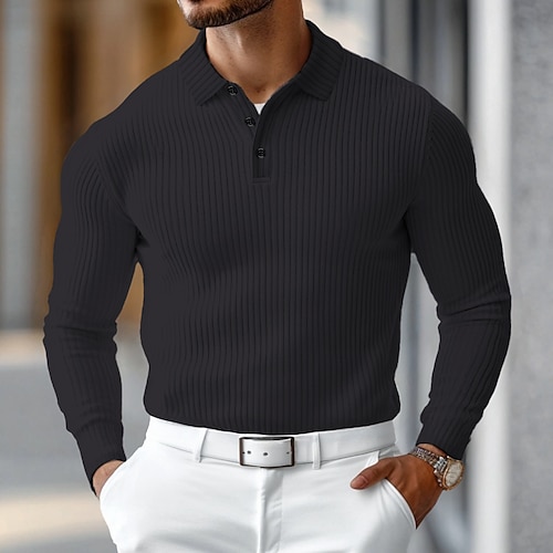 Per uomo Top a Maglia a Coste Testurizzato Affari Casuale Colletto Polo a Coste Manica Lunga Moda Essenziale Tinta unica Lavoro a maglia Autunno Inverno Vestibilità aderente Grigio scuro Nero Bianco