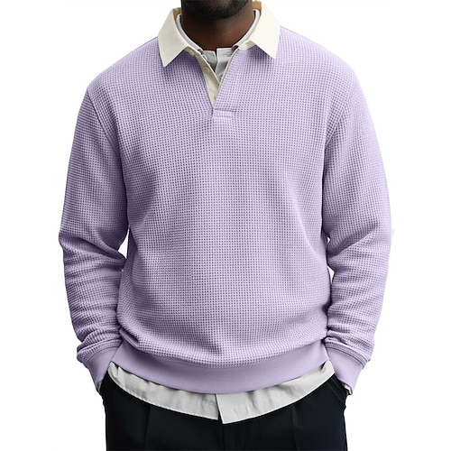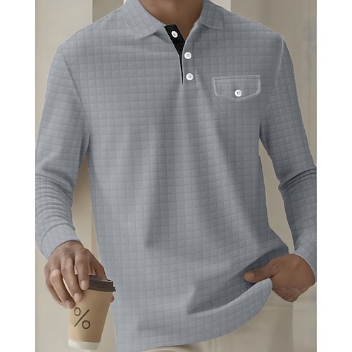Per uomo Magliette Polo a Nido d'Ape Maglia da golf Lavoro Casuale Bavero Manica Lunga Essenziale Moderno Semplice Bottoni Primavera Autunno Vestibilità regolare Blu Verde scuro Vinaccia Nero Bianco