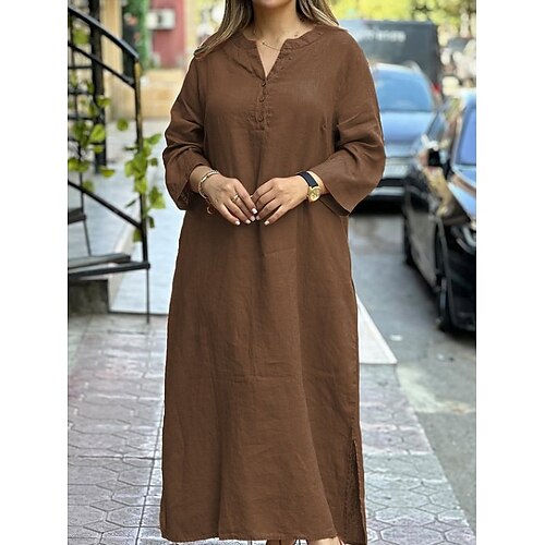 Per donna Abito Midi Misto cotone Vestito a caftano Vestito Casual Elegante Moda Moderno Quotidiano Vacanza Uscire Vestibilità comoda Semplice Manica Lunga Girocollo Blu Nero Bianco Cachi Primavera