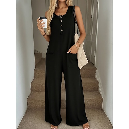 Per donna Normale Tuta Attivo Tinta unica Senza Maniche Gamba larga Collo a U Tasca Bottoni Quotidiano Vacanza Vestibilità comoda Nero Verde militare Grigio Estate