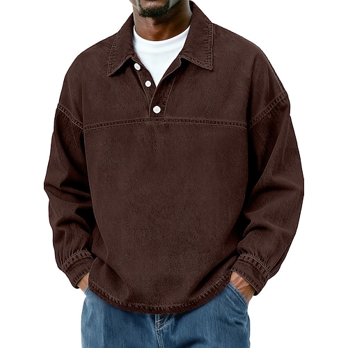 Per uomo Polo in Cotone Casuale Vacanza Classico Manica Lunga Moda Essenziale Tinta unica Semplice Stile Vintage Lavato Inverno Primavera Autunno Tutte le stagioni Vestibilità comoda Nero Verde