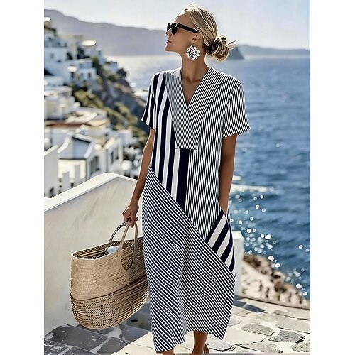 Per donna Abito Midi Vestito Estivo Vestito Casual Vacanza Casual Spiaggia Spiaggia Feste Vestibilità comoda Grafico Geometrico Manica Corta Scollo a V Blu Nero Viola Verde Estate Primavera