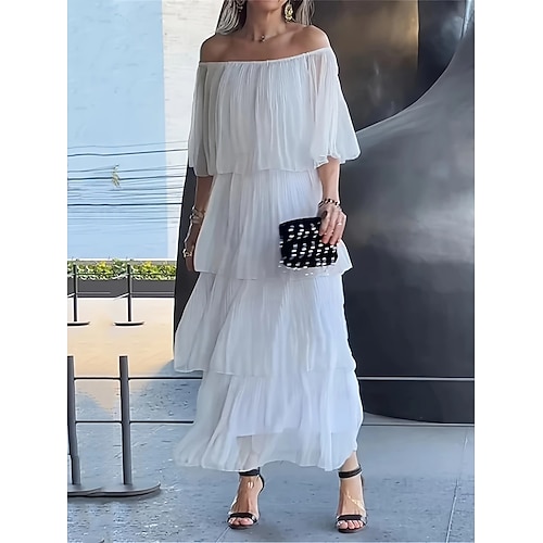 Per donna Abito maxi Abito a trapezio Abito Estivo Casual Quotidiano Vestibilità comoda Semplice Mezza Manica Senza Spalle Bianco Estate Primavera
