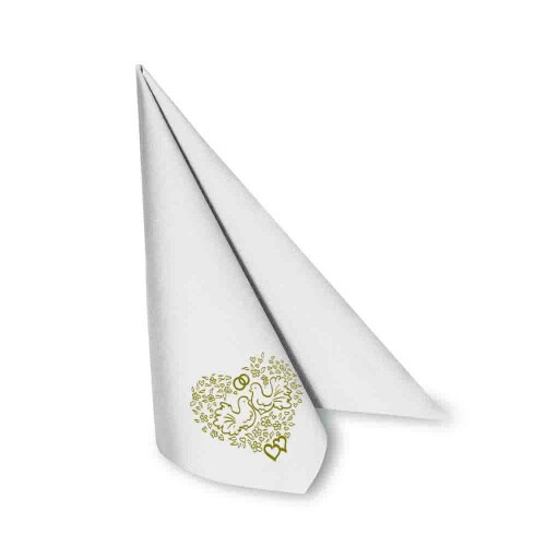 800 Servietten PAP-Airlaid 40x40cm weiß Hochzeitsmotiv – Premium Tafelservietten