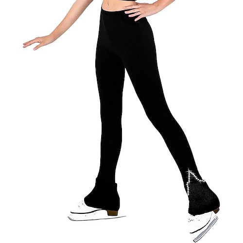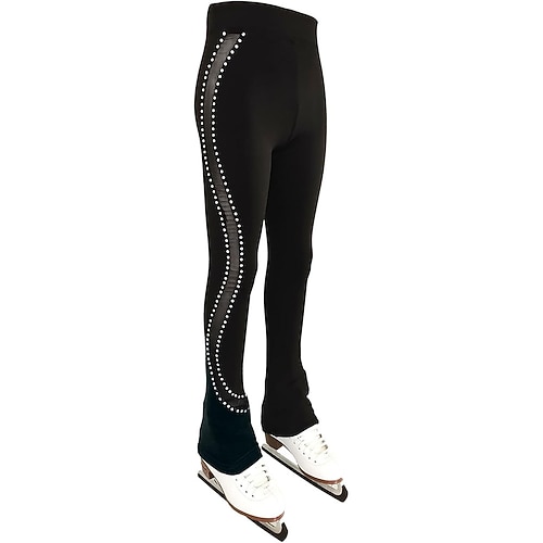 pantaloni da pattinaggio artistico da donna e da ragazza, pantaloni da pattinaggio sul ghiaccio, neri, elasticizzati, abbigliamento da pattinaggio per gare di allenamento, termici, caldi, con