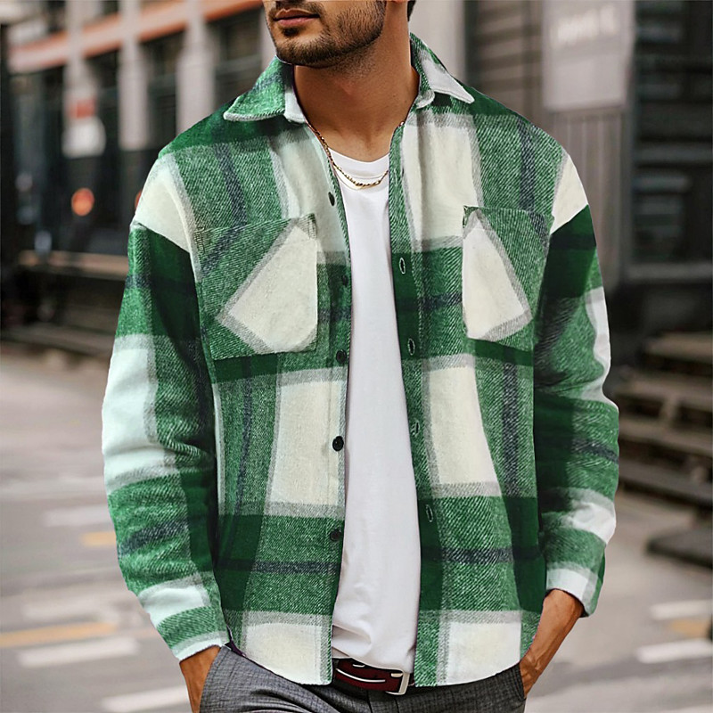 Men's Shirt Flannel Shirt Overshirt Lattice Outdoor Street Red Blue Green Khaki Long Sleeve Turndown Spring Fall Clothing Apparel