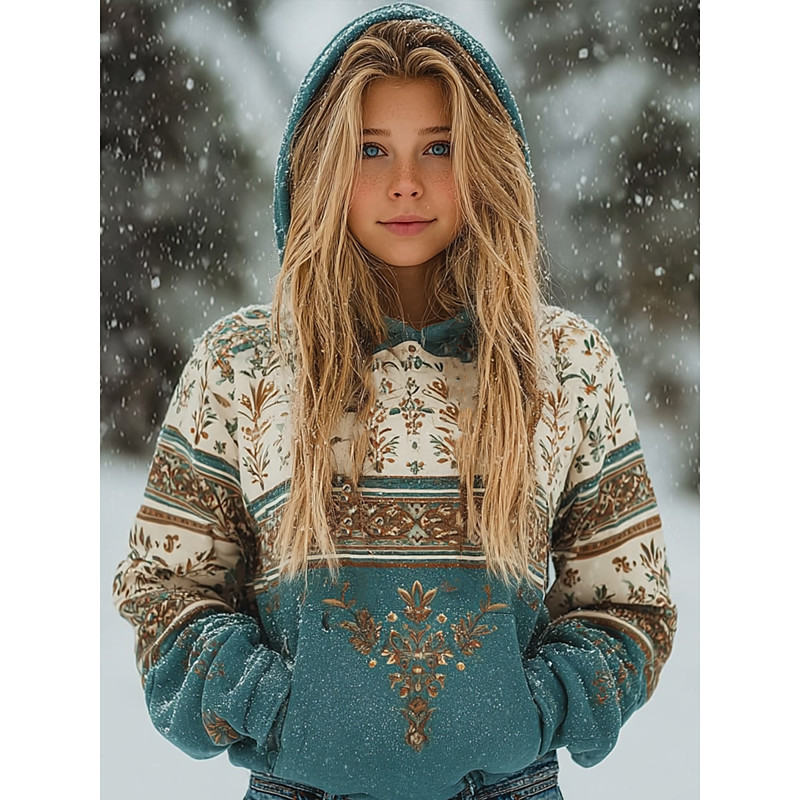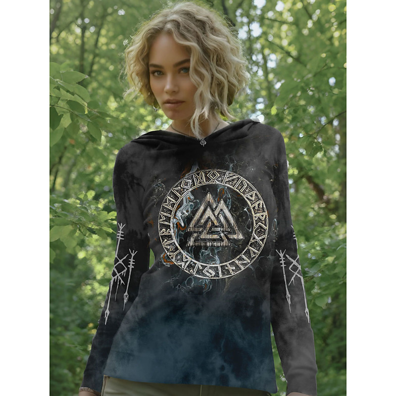 Women's Viking Boho Vintage Pullover Hoodie Sweatshirt Graphic Tribal Vintage Casual Long Sleeve Hooded Regular Tops Casual White Spring Fall Winter