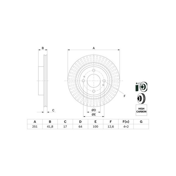 Jarrulevy Tuuletettu, Etuakseli Bosch 0 986 479 F14 - mitsubishi mirage / space star halvkombi vi, mirage sedan vi - OE 4615A129