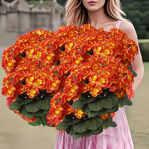 3 fiori artificiali autunnali arancioni resistenti ai raggi UV con foglie verdi, perfetti per interni decorazioni per esterni, ideali per giardini, patii, matrimoni, cerimonie ed eventi speciali –