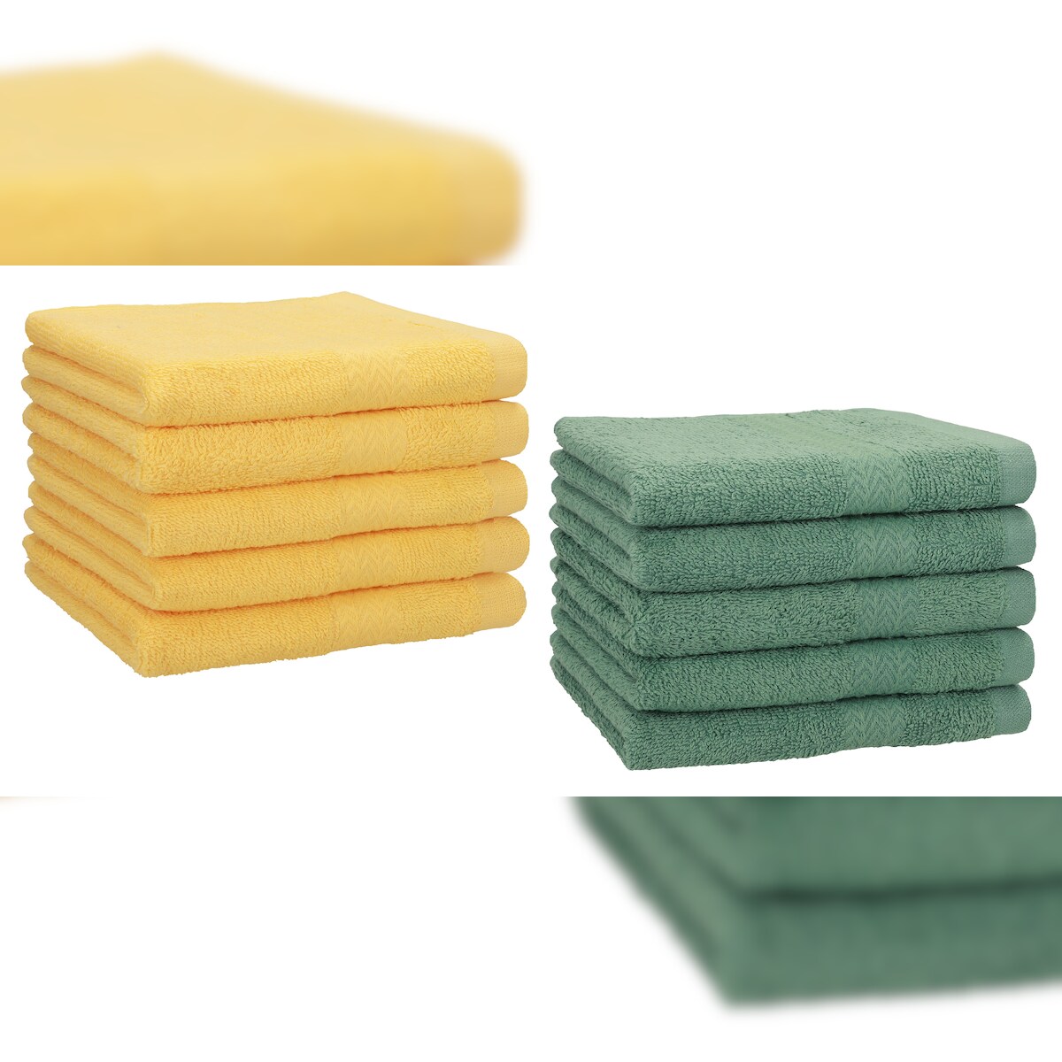 Betz 10 Stück Gästehandtücher PREMIUM 100% Baumwolle Gästetuch Set 30x50 cm honiggelb und tannengrün