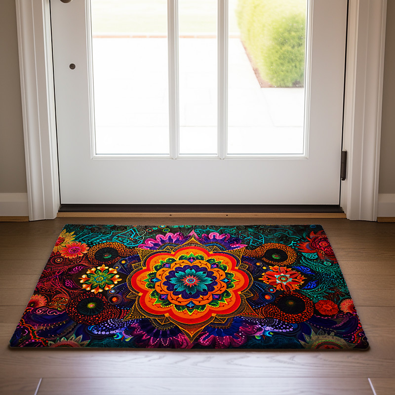 Painting Mandala Bohemian Doormat v Non-Slip Oil Proof Rug Indoor Outdoor Mat Bedroom Decor Bathroom Mat Entrance Rug