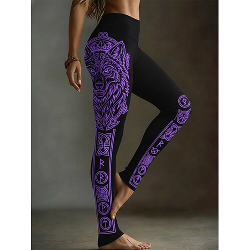 Damen-Leggings im Wikinger-Stil, kuschelig, für Urlaub, Vintage, Ethno-Look, lange Länge, hoher Bund, Tiermuster, bequem, hochelastisch, lässig, in Blau und Lila, für Frühling und Herbst, schmale