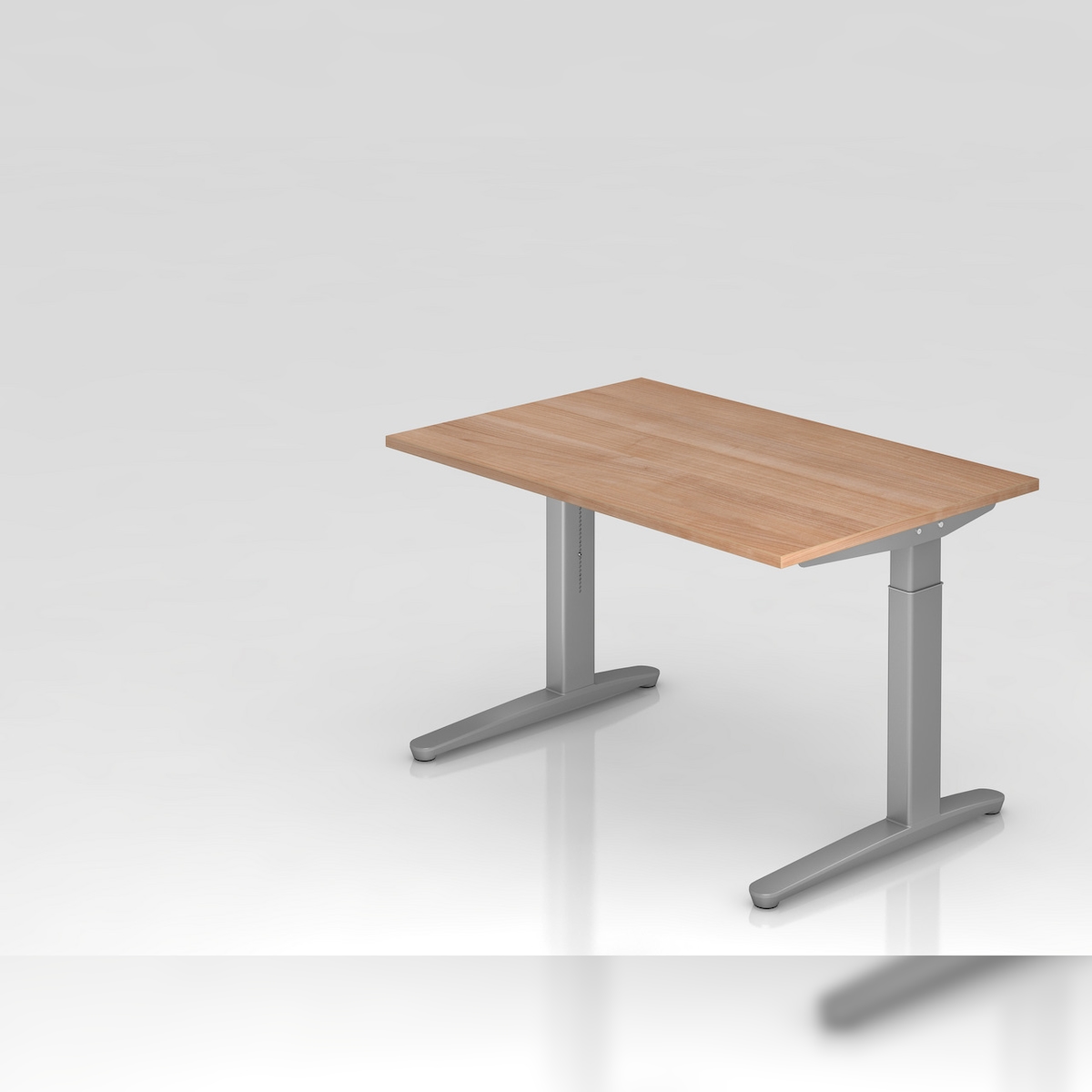 PROREGAL Schreibtisch Mika | Nussbaum | Silber Gestell | BxT 120x80cm | Arbeitshöhe 65-85cm | höhenjustierbar, 1cm Raster | C-Fuß-Gestell